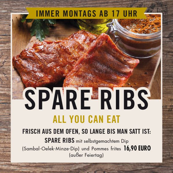 SPARE RIBS – ALL YOU CAN EATAll you can eat. Frisch aus dem Ofen, so lange bis…