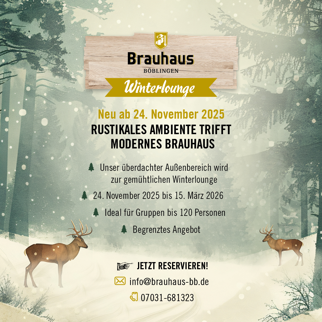 Rustikales Ambiente trifft modernes Brauhaus. Unser überdachter Außenbereich wird zur gemütlichen Winterlounge. Ideal für Gruppen bis 120 Personen.